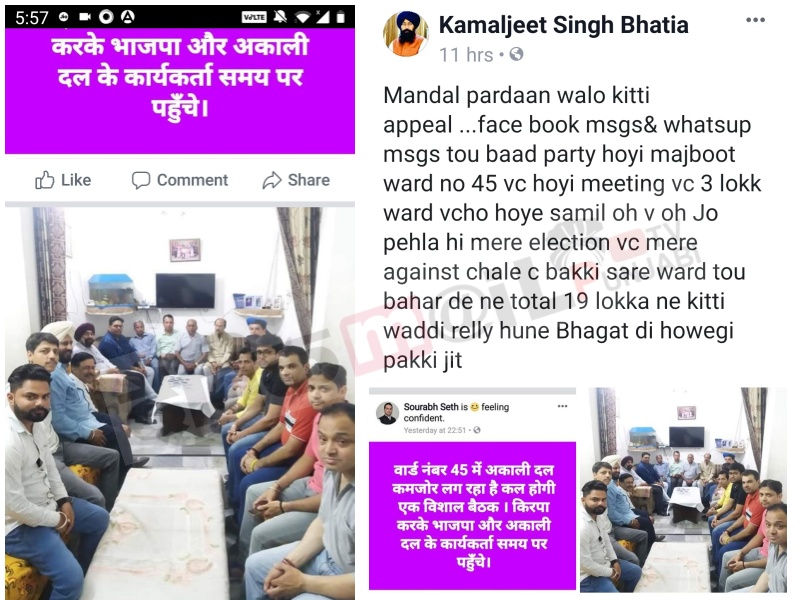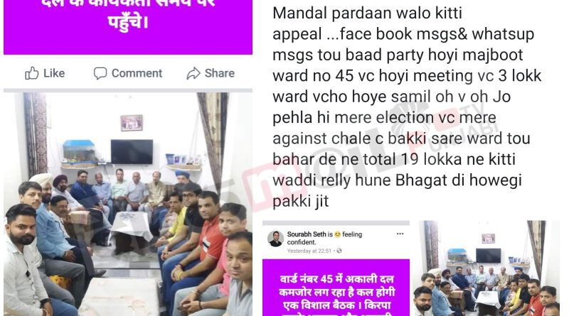 वार्ड नंबर 74 से  से हारी कविता सेठ के पति सौरभ सेठ जो कि भाजपा के मंडल प्रधान भी है ने फेसबुक पर बिना किसी आधार के कमलजीत भाटिया से पंगा ले लिया है. भाटिया की अपने वार्ड में कितनी पैठ है यह बात किसी से छिपी नहीं है मगर फिर भी भाजपा के मंडल प्रधान ने फेसबुक पर स्टेटस डाल दिया वार्ड 45 से अकाली दल कमजोर चल रहा है कल एक विशाल बैठक होगी. हैरानी की बात है कि मंडल प्रधान सौरभ सेठ खुद अपनी पत्नी को चुनाव नहीं जिता पाये थे और लगातार जीत रहे भाटिया के वार्ड को कमजोर बता उन्होंने अकाली कैंडिडेट चरणजीत अटवाल को कमजोर करने की कोशिश की. भाटिया भी कहां पीछा छोड़ने वाले थे अगले दिन मीटिंग हुई तो वह कितनी विशाल थी यह तस्वीर देख कर ही पता चलता है. भाटिया ने तुरंत फोटो फेसबुक पर अपलोड कर कहा देख लो विशाल बैठक कुल 19 लोग हैं जिसमें तीन वार्ड के हैं और बाकी सारे बाहर के हैं. यही नहीं जो तीन वार्ड के हैं उनमें भी वो लोग है जो चुनाव में उनके खिलाफ थे. भाटिया ने इस पोस्ट में मोहिंदर भगत को भी लपेटते हुए लिखा कि 19 लोका ने कीती वड्डी रैली हुण भगत दी जित्त पक्की. गौर हो कि इसी बात को लेकर भाटिया और भगत में तल्खी बढ़ी है मगर भाटिया से पंगा मोहिंदर भगत तो विधान सभा चुनावों में भी भारी पड़ना तय है.